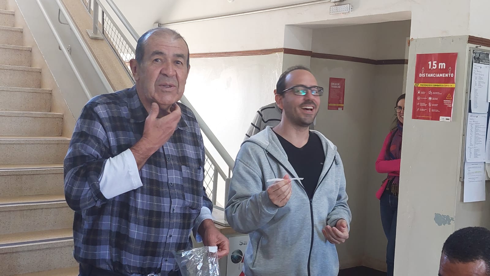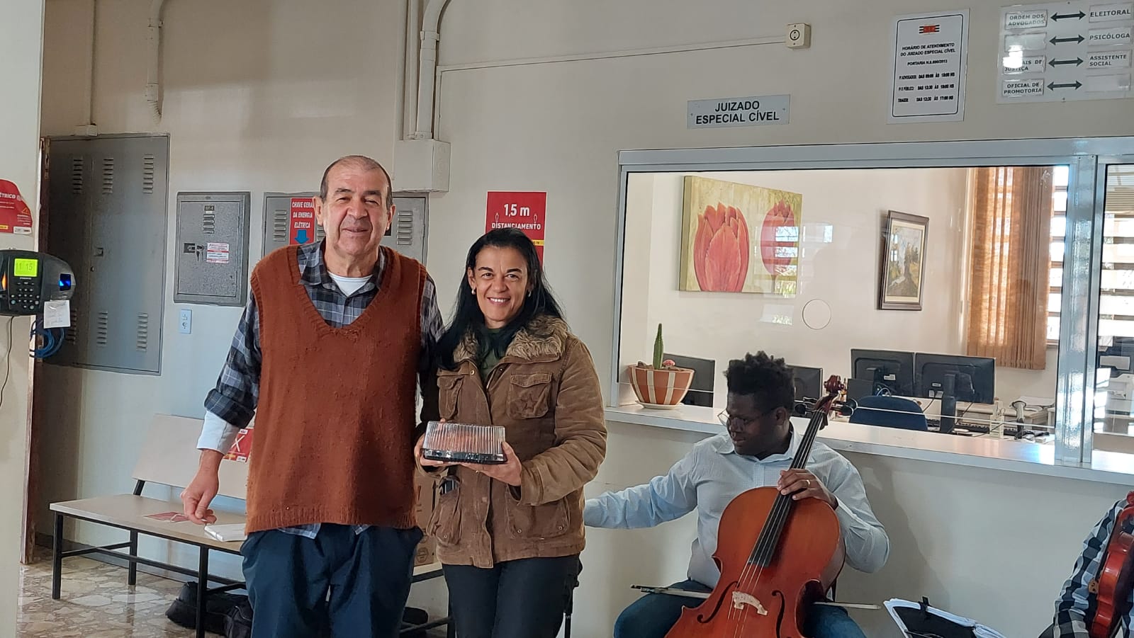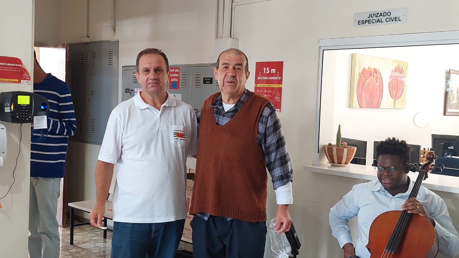 Durante toda esta sexta-feira (12), servidores das comarcas de Patrocínio Paulista, Pedregulho e Franca receberam os dirigentes da ASSOJURIS e do SINJURIS, Adolfo Benedetti Neto (Pardal) e Valdir Gaspar oportunidade em que se fizeram acompanhar pelo presidente da Ajesp, Samuel de Oliveira que retomou uma antiga tradição da entidade de homenagem ao dia dos pais realizando sorteios e recepcionando os trabalhadores do Fórum com um dueto de cordas, ato este que foi interrompido em razão pandemia da Covid-19.