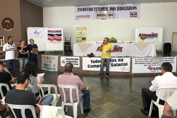 No Encontro dos Judiciários, recepcionado pela ASSOJURIS e SINJURIS na região de Dracena e Andradina, realizado no dia 16 de fevereiro, ocasião em cerca de 150 servidores estiveram representando 36 cidades deliberaram pela pre-pauta reivindicatória 2019, além de terem sido devidamente convocados a comparecerem na assembleia geral.