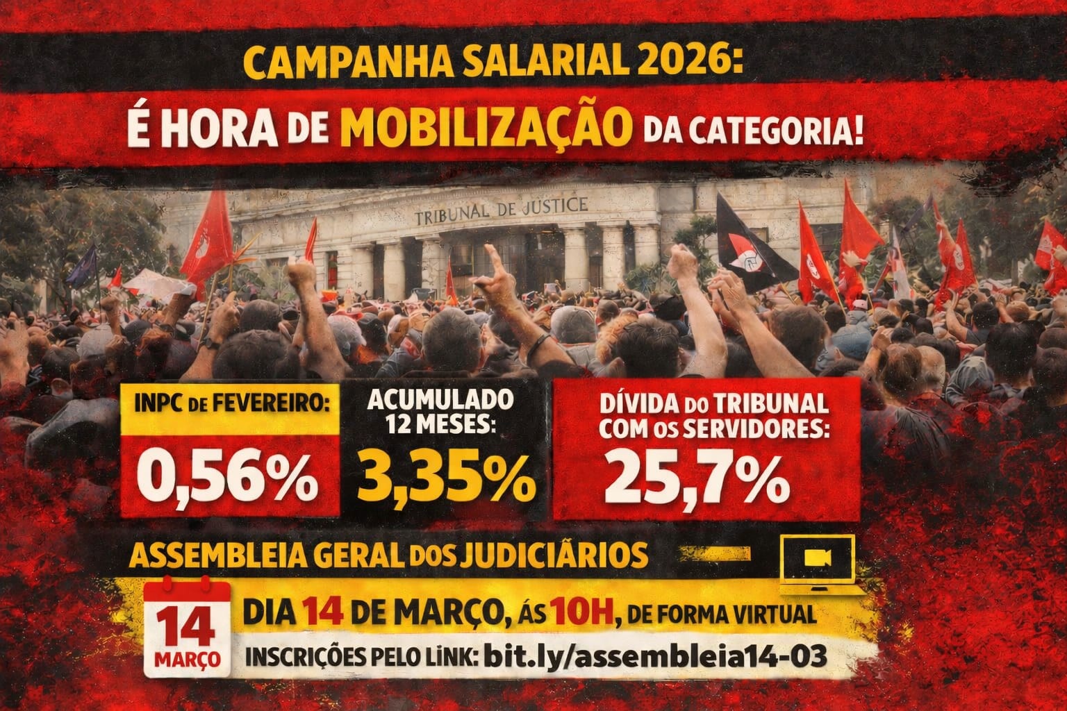 No dia 14 de março, às 10 horas, será realizada Assembleia Geral dos Judiciários, de forma virtual.