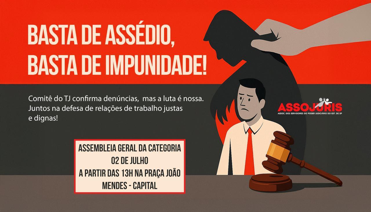 – Sexta-feira última, 13 de junho, estiveram reunidos em São Paulo, Capital, na sede do DAPS, prédio do Fórum João Mendes, membros do Comitê de Prevenção e Combate ao Assédio Moral, Assédio Sexual e Discriminação do TJ/SP, oportunidade em que entidades representativas de servidores, dentre elas a ASSOJURIS, representada pela diretora Joara Borges, protocolaram expediente através do qual pedem providencia a respeito da exoneração dos servidores que exerciam cargo em comissão, devido à participação do movimento grevista em curso, desde o dia 14 de maio.