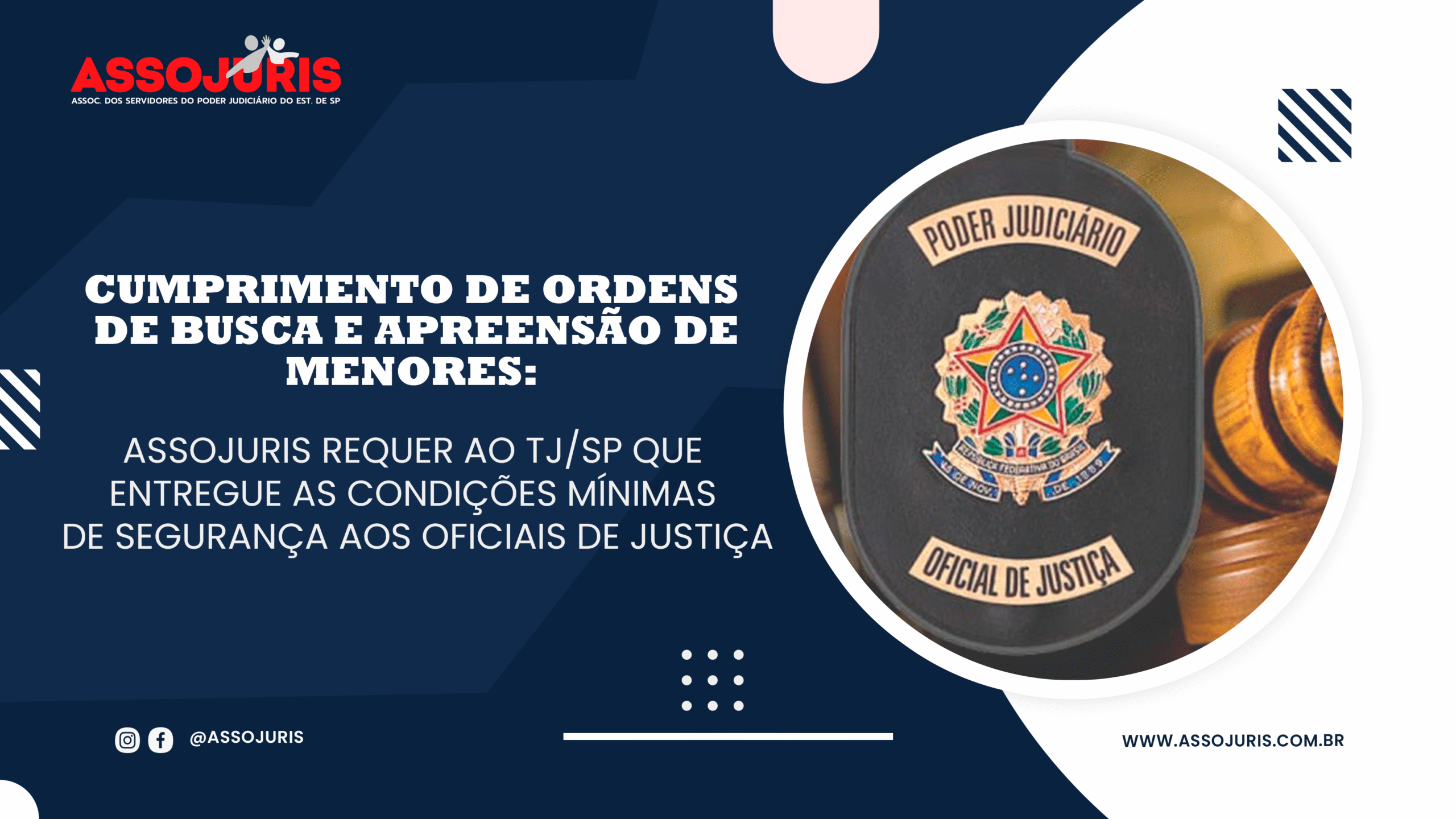 Nesse contexto, ao tomar conhecimento de que os oficiais de justiça da comarca de São José do Rio Preto estão sendo obrigados pelo Sr. Coordenador do cartório da Vara da Infância e da Juventude a cumprirem as ordens de busca e apreensão de menores em seus veículos próprios, sem qualquer estrutura de segurança e apoio aos menores e familiares, a ASSOJURIS encaminhou requerimento ao Presidente do TJ/SP, Desembargador Fernando Antonio Torres Garcia, requerendo a adoção de todas as medidas para eximir os oficiais de justiça de cumprirem as ordens de busca e apreensão de menores sozinhos, com carro próprio e sem um aparato minimamente necessário que assegure a segurança do servidor público, das partes e, principalmente, dos menores envolvidos.