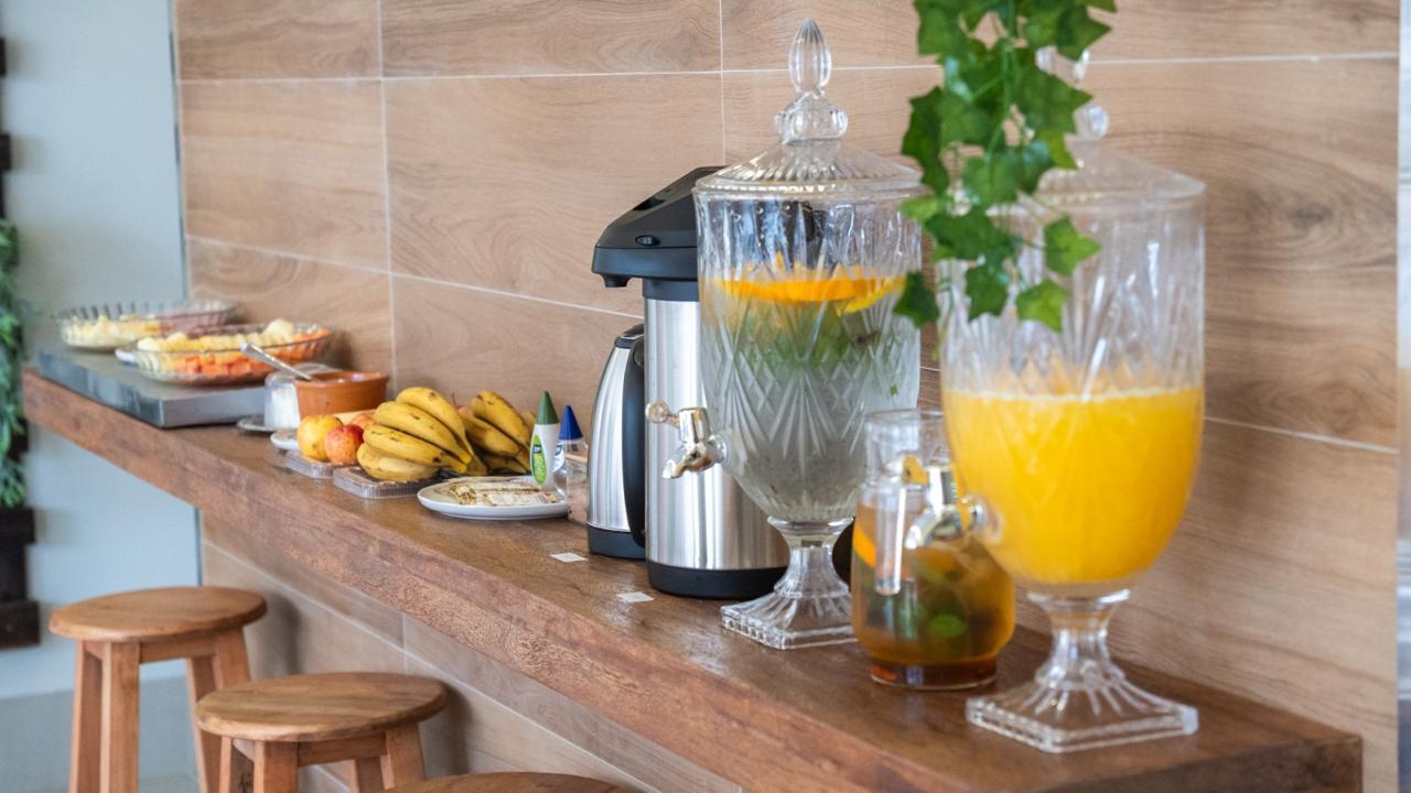 Ainda no térreo, é oferecido aos hóspedes um café da manhã caprichado; loja de conveniência com preços acessíveis; mobiliários de modo a permitir horas de descanso; máquina de fabricar gelo disponibilizado gratuitamente aos hóspedes; bem como bebedouros com água filtrada, gelada e natural.