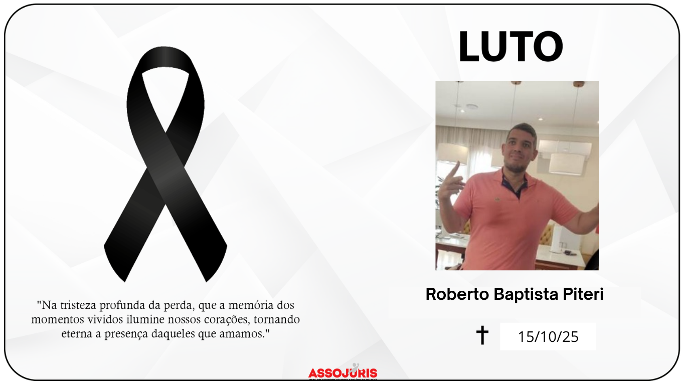 É com profundo pesar que comunicamos o falecimento de Roberto Baptista Piteri, que atuou no Fórum de Ribeirão Preto como menor colaborador.