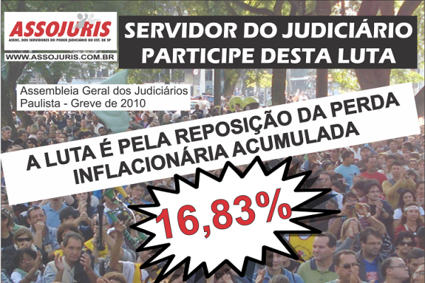 A Assojuris faz lembrar que a reivindicação é de toda a perda inflacionária (16,83), além dos outros itens da pauta a ser submetida ao crivo da assembleia geral do dia 22 de março, as 13:00 hs na praça João Mendes, São Paulo.