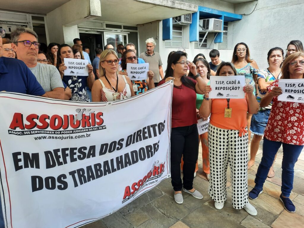 Nesta quarta-feira os trabalhadores do fórum de São Vicente igualmente a inúmeras comarcas do estado de São Paulo realizaram ato organizado pela ASSOJURIS na pessoa do seu diretor Ribeiro questionando a Presidência do Tribunal de Justiça do Estado de São Paulo sobre o não cumprimento de um direito assegurado pela constituição da republica, recomposição da perda inflacionaria.