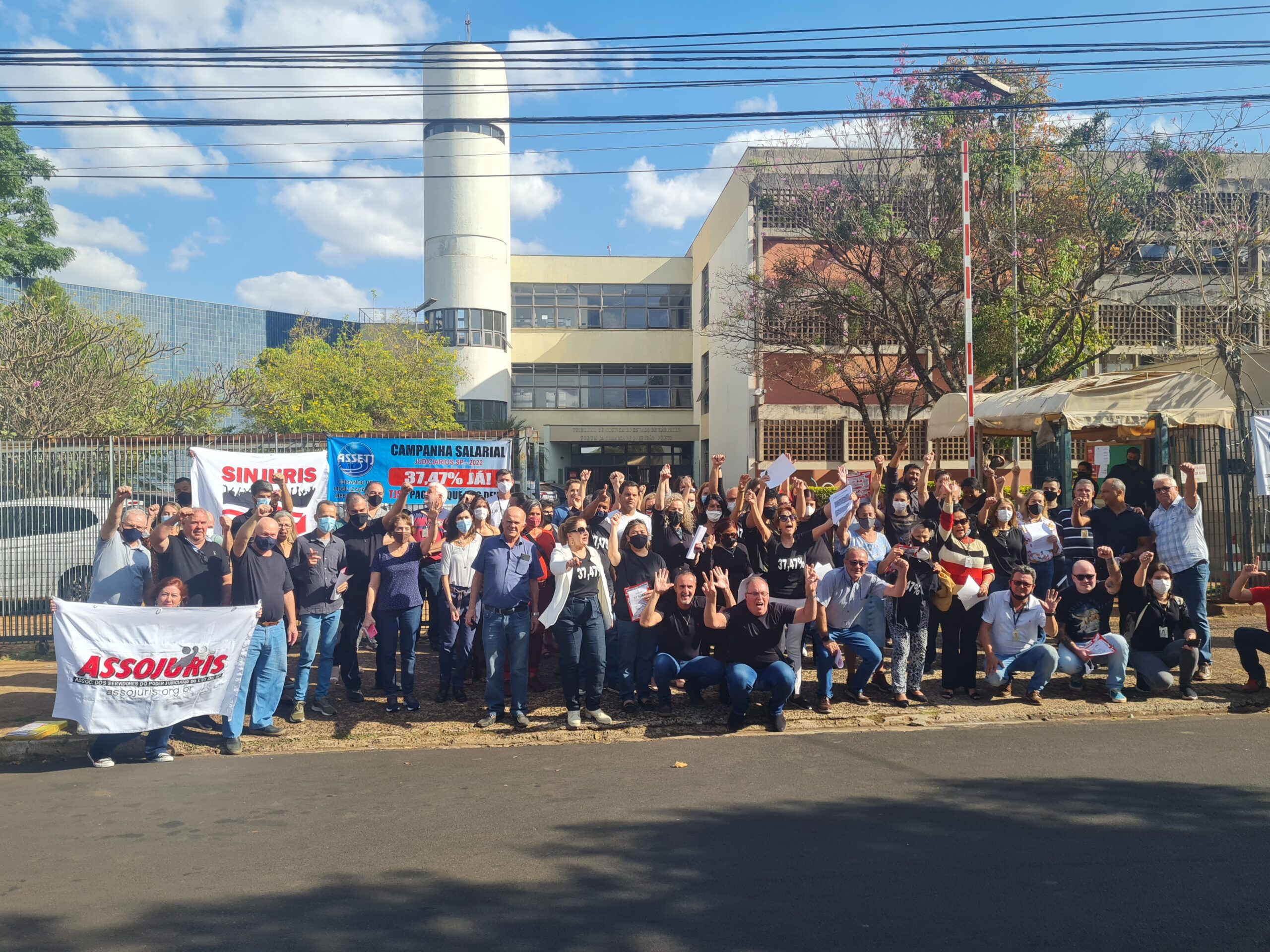 No início da tarde desta quarta-feira, 29 de junho, dezenas de funcionários do Tribunal de Justiça do Estado de São Paulo e entidades representativas dos servidores, dentre elas a ASSOJURIS e o SINJURIS, estes representados pelos dirigentes Adolfo Benedetti Neto (Pardal), Valdir Gaspar, Márcio Canesin e Humberto Otoni, realizaram um ato em frente ao Fórum de Ribeirão Preto ocasião em que foram discutidos direitos e pleitos da categoria.