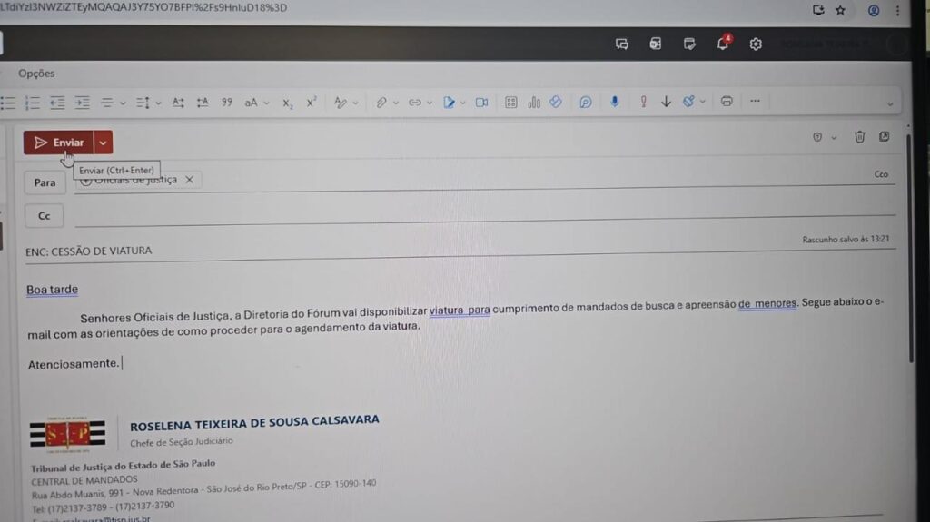 Em data de hoje, 28 de outubro, terça-feira, após envio de expediente a egrégia presidência do Tribunal de Justiça do Estado de São Paulo, desembargador Fernando Antônio Torres Garcia, em data de 27 de agosto, ocasião em que a Associação dos Servidores do Poder Judiciário do Estado de São Paulo – ASSOJURIS, postulou que por ocasião do cumprimento de ordens de busca e apreensão de menores, fosse concedido aos Oficiais de Justiça lotados na comarca de São José do Rio Preto, interior de São Paulo, as condições mínimas de segurança , inclusive eximindo os Oficiais de cumprirem tais determinações sozinhos, com carro próprio e sem um amparo minimamente necessário de modo a assegurar a segurança do servidor público, das partes e, principalmente, dos menores envolvidos; os Oficiais de Justiça de Rio Preto são cientificados de que doravante ”a Diretoria do Fórum (de São José do Rio Preto) vai disponibilizar viatura para cumprimento de mandados de busca e apreensão de menores”.